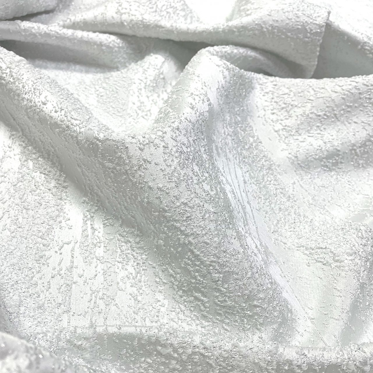Это декоративная ткань, часто с объемным, выступающим рисунком .При изготовлении используется несколько типов волокон , что позволяет создавать сложные узоры. Вплетена металлизированная нить. Несмотря на свою объемность, ткань прекрасно драпируется, выкладывается в нужный силуэт. Используется для пошива пальто, жакетов, костюмов, юбок, платья, как повседневного так и праздничного направления.