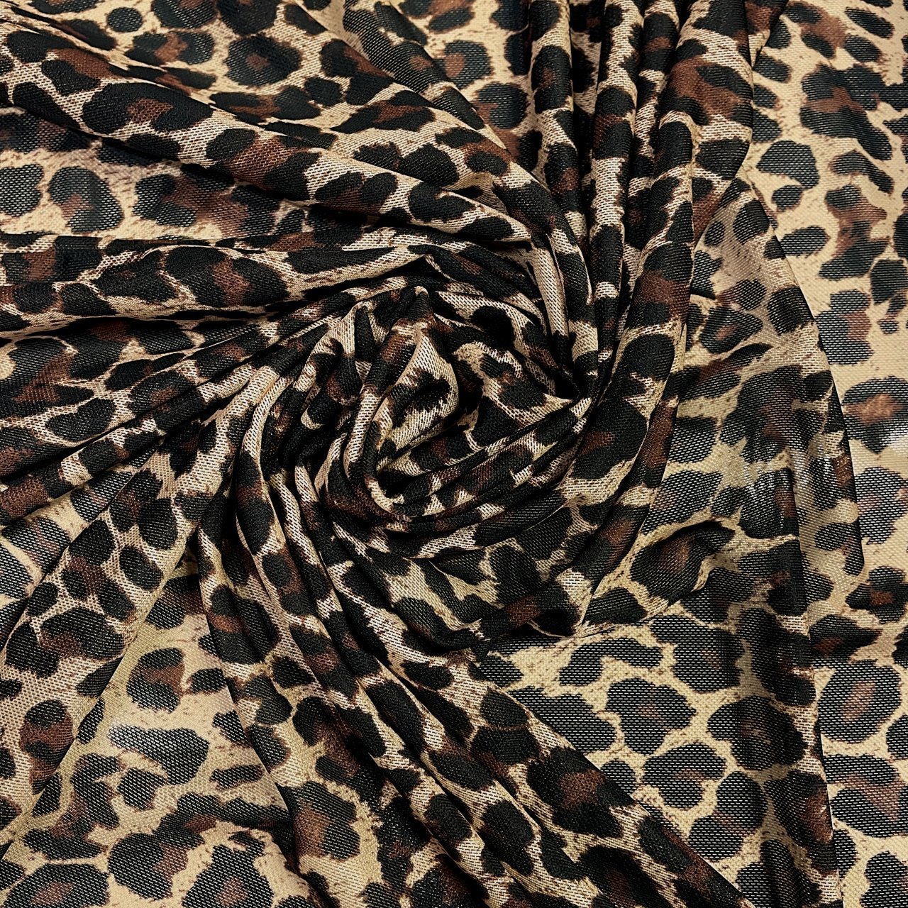 Нежная и хорошо растяжимая матовая сетка с принтом под леопард .Ткань с мелкими ячейками, мягкая, приятная на ощупь. Прекрасно подходит для пошива купальников любого назначения - спорт, пляж.
